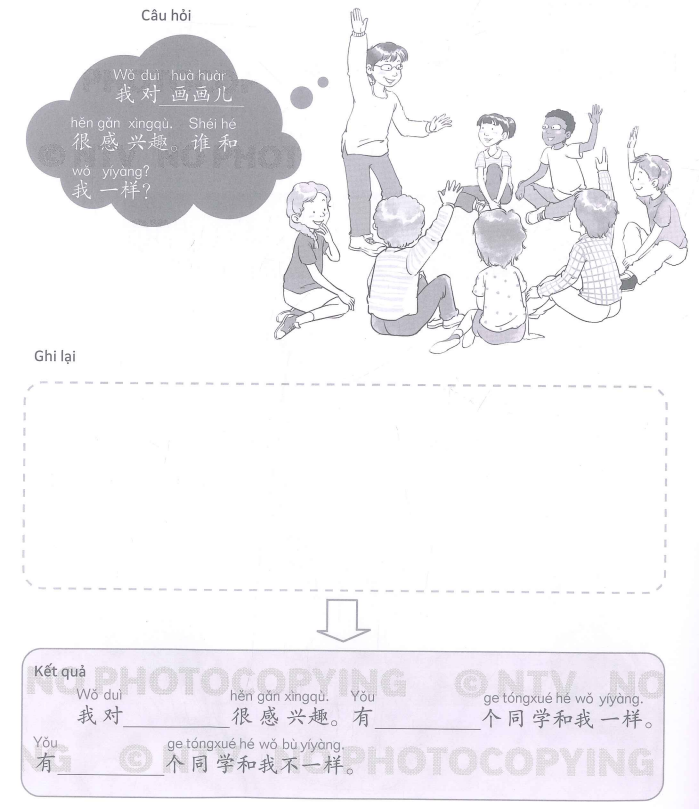 找出有多少同学和你有一样的兴趣。Tìm xem có bao nhiêu bạn học có hứng thú giống em.