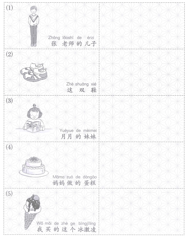 (1) 张老师的儿子 /Zhāng lǎoshī de érzi/ – Con trai của thầy Trương