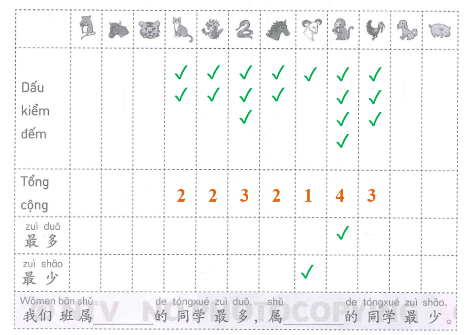 - Lớp chúng em có nhiều bạn tuổi Khỉ nhất, và ít bạn tuổi Dê nhất.