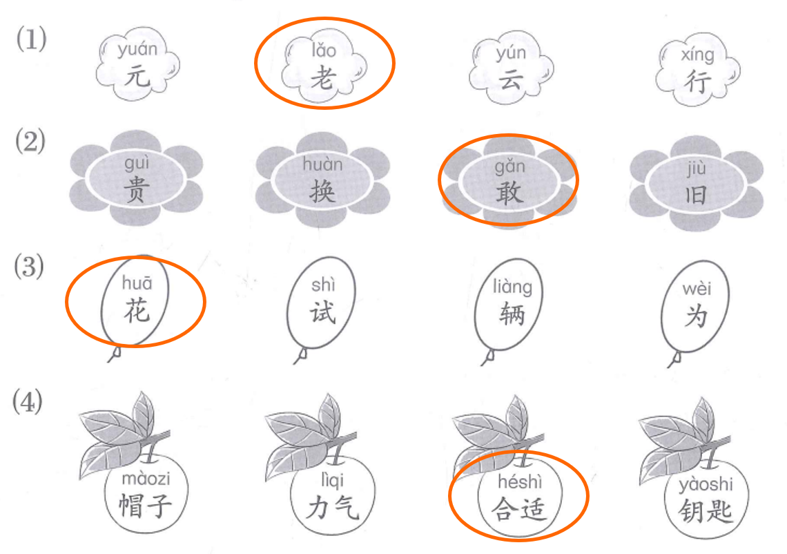 4. 选一选,答一答。Chọn và trả lời.