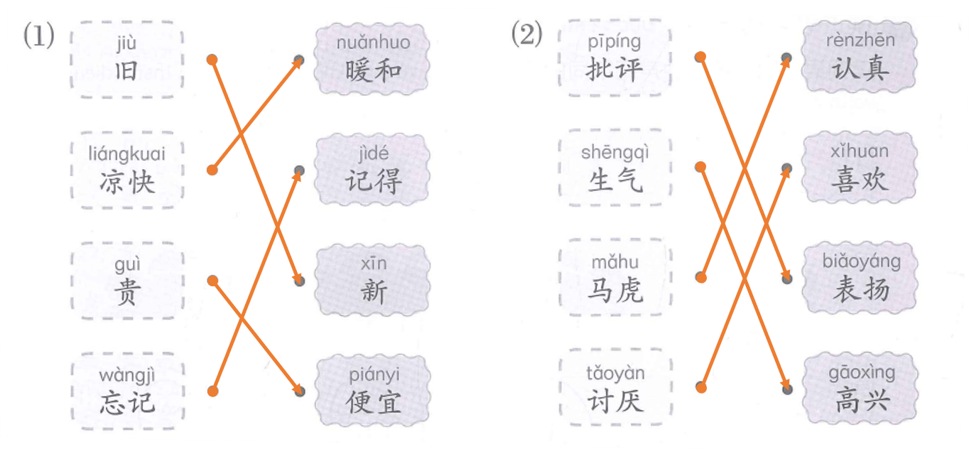 反义词搭配连线。Nối những từ trái nghĩa với nhau.