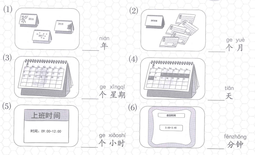 看图片,算一算图中分别是多长时间。Nhìn hình và tính xem khoảng thời gian trong mỗi hình là bao lâu.