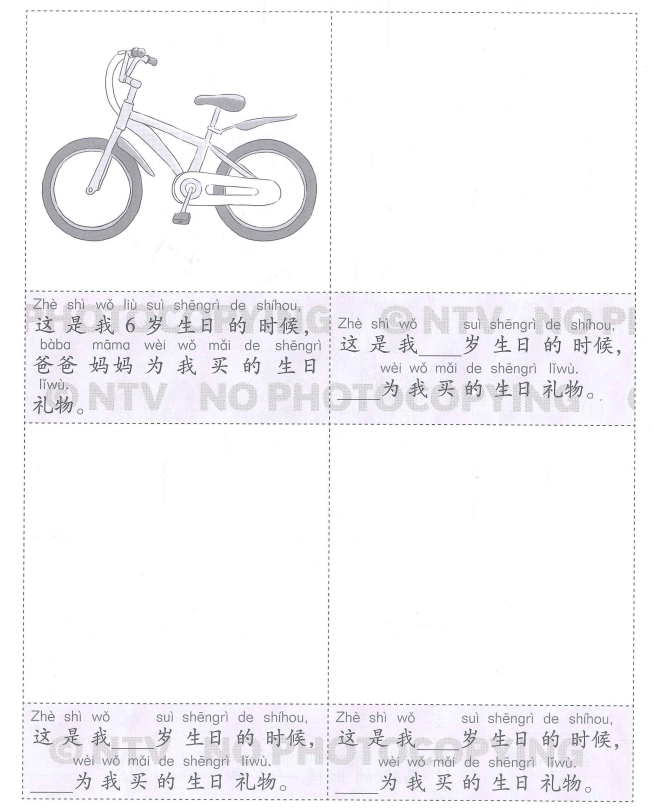 • Zhè shì wǒ 6 suì shēngrì de shíhou, bàba māma wèi wǒ mǎi de shēngrì lǐwù.