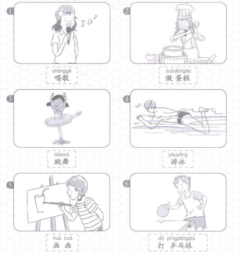 (6) 他在打乒乓球 /dǎ pīngpāngqiú/ – chơi bóng bàn