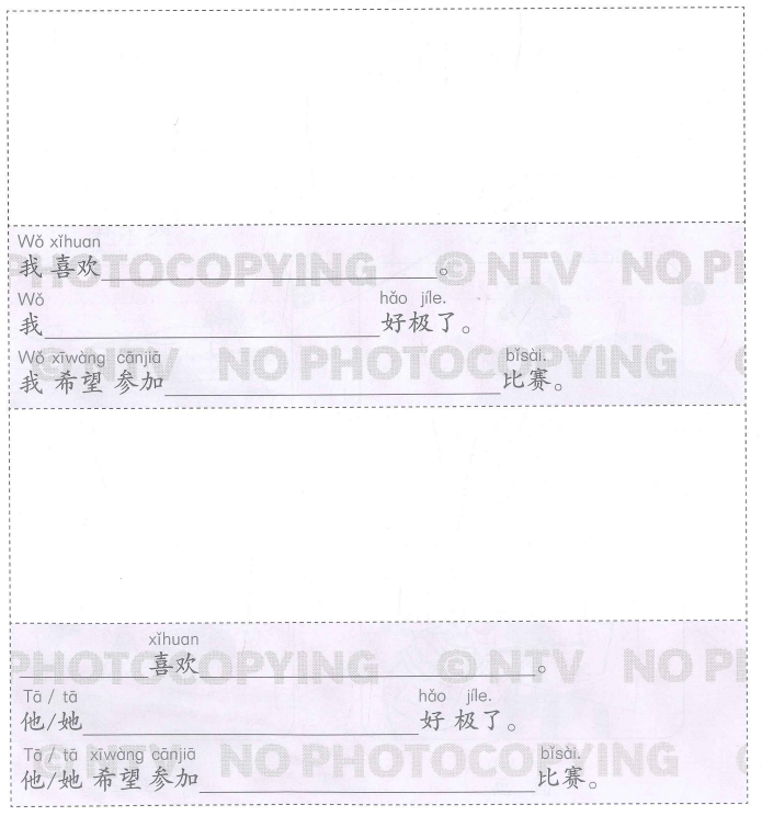 根据图片,在第85页选择问句和答句组成对话,剪下来贴在对应的图片旁边,然后和同伴一起读一读。Dựa vào hình, chọn câu hỏi và câu trả lời ở trang 85 để tạo thành đoạn đối thoại. Sau đó dán vào bên cạnh hình phù hợp và đọc cùng bạn.