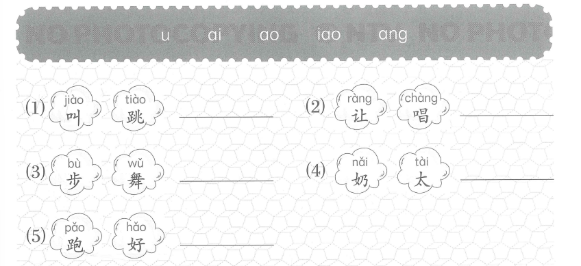 (1) 🔊 叫 jiào 🔊 ,跳 tiào → iao