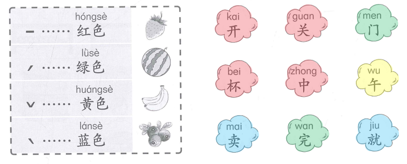 给下列汉字标声调并涂颜色。一声涂红色,二声涂绿色,三声涂黄色,四声涂蓝色。