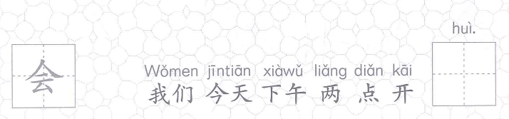 • Wǒmen jīntiān xiàwǔ liǎng diǎn kāi huì.