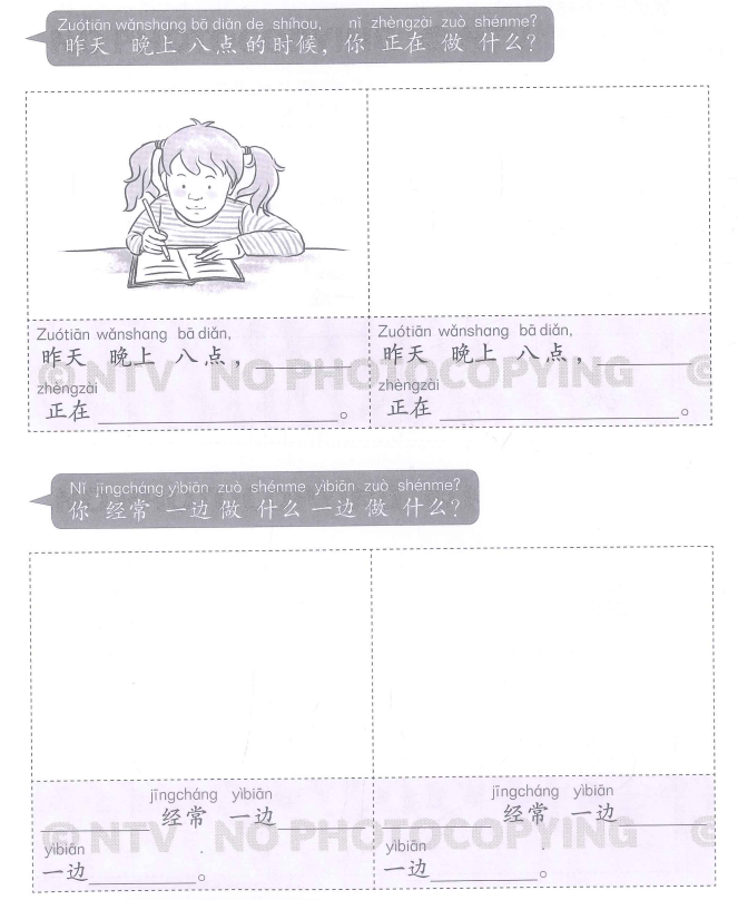 • Zuótiān wǎnshang bā diǎn de shíhou, nǐ zhèngzài zuò shénme?