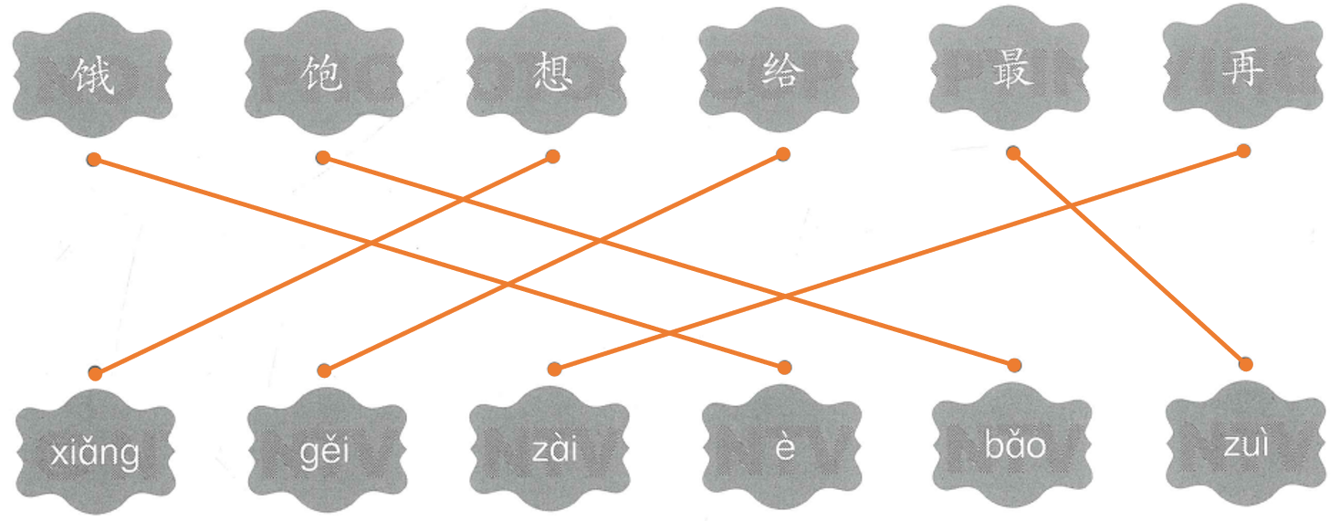 把汉字和对应的拼音连起来,并读一读。Nối mỗi chữ với phiên âm tương ứng và đọc to.