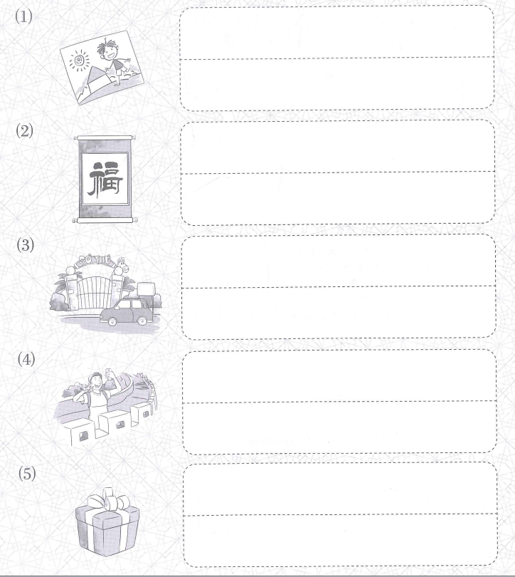 根据图片选择第77页的问题和回答组成对话,剪下来贴在相应的图片旁边,然后和同伴一起读一读。Dựa vào hình, chọn câu hỏi và câu trả lời ở trang 77 để tạo thành đoạn đối thoại, sau đó cắt những câu này và dán vào bên cạnh hình phù hợp rồi cùng đọc với một người bạn.