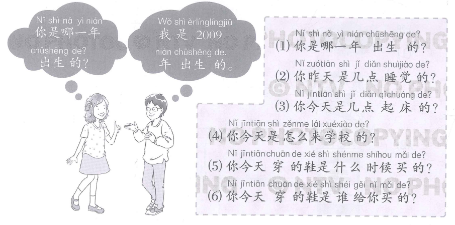 (5) 🔊 你今天穿的鞋是什么时候买的?
