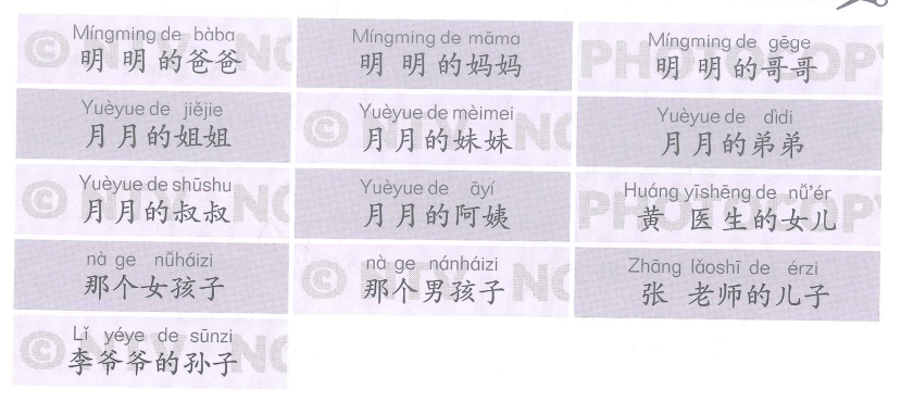 明明的哥哥 月月的弟弟 月月的叔叔 那个男孩子 李爷爷的孙子 张老师的儿子 |