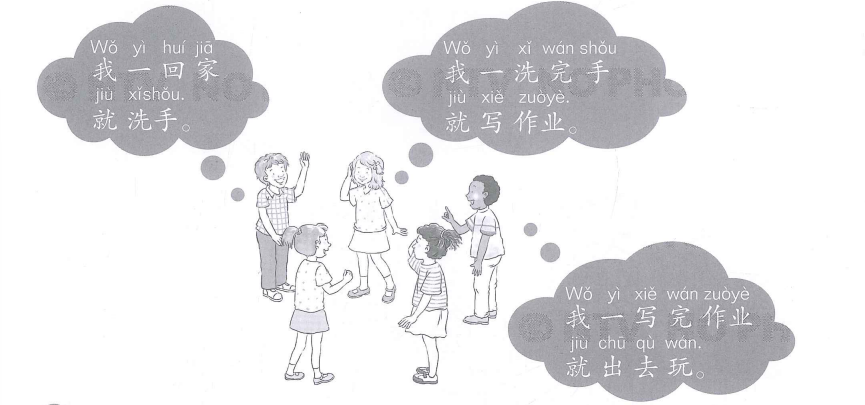 (1) Wǒ yī huí jiā jiù xǐshǒu.