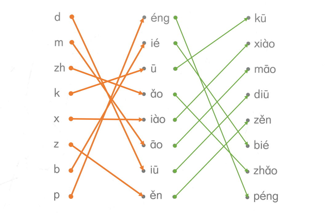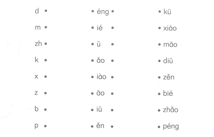 把声母和韵母连起来,组成音节,并读一读。Nối thanh mẫu với vận mẫu để tạo thành âm tiết rồi đọc to âm tiết.