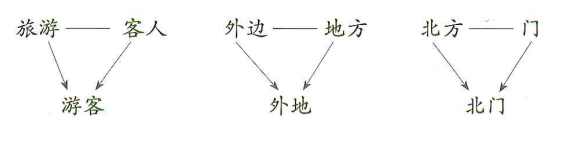 - 北方 (běifāng) (phương Bắc) → 北门 (běimén) (cổng Bắc), ghép chữ “北” với chữ mới “门”.